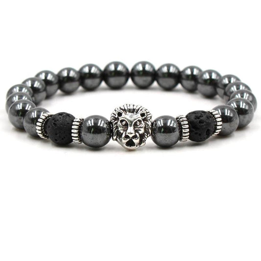 Black Volcanic Rock Leopard Head Lion Head Elastic Bracelet Bracelet